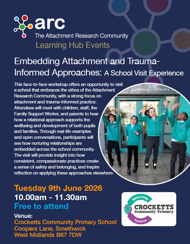This face-to-face workshop offers an opportunity to visit a school that embraces the ethos of the Attachment Research Community, with a strong focus on attachment and trauma-informed practice. Attendees will meet with children, staff, the Family Support Worker, and parents to hear how a relational approach supports the wellbeing and development of both pupils and families. Through real-life examples and open conversations, participants will see how nurturing relationships are embedded across the school community. The visit will provide insight into how consistent, compassionate practices create a sense of safety and belonging, and inspire reflection on applying these approaches elsewhere.